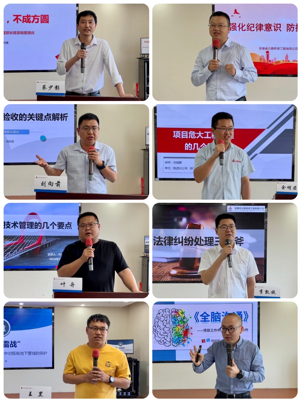 培训采用新老讲师结合的形式,内容����� �������Ƴ����������� �������Ƴ������������ �������Ƴ������������ �������Ƴ������涉及公司最新规章制度解析、方案编制和检查验收����� �������Ƴ������������ �������Ƴ������������ �������Ƴ������������ �������Ƴ�������、桥梁工程施工技术、地下管线保护、项目危大工程、����� �������Ƴ������������ �������Ƴ������������ �������Ƴ������������ �������Ƴ�������廉洁教育、法律纠纷处理以及通用����� �������Ƴ������������ �������Ƴ������������ �������Ƴ������������ �������Ƴ�������管理课程等。