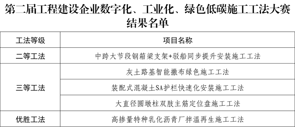 近日,中国施工企业管理����� �������Ƴ������������ �������Ƴ������������ �������Ƴ������������ �������Ƴ������协会公布了第二届工程建设企业数字化、工业����� �������Ƴ������������ �������Ƴ������������ �������Ƴ������������ �������Ƴ������化、绿色低碳施工工法大赛结果,����� �������Ƴ����������� �������Ƴ������������ �������Ƴ������������ �������Ƴ�������公司《中跨大节段钢箱梁支架+驳船����� �������Ƴ������������ �������Ƴ������������ �������Ƴ������������ �������Ƴ�������同步提升安装施工工法》《灰土路基智����� �������Ƴ������������ �������Ƴ������������ �������Ƴ����������� �������Ƴ�������能撒布绿色施工工法》等五����� �������Ƴ������������ �������Ƴ������������ �������Ƴ������������ �������Ƴ�������项工法在众多参赛工法中脱颖而出,分别获得二等����� �������Ƴ������������ �������Ƴ������������ �������Ƴ������������ �������Ƴ�������工法1项、三等工法3项、����� �������Ƴ������������ �������Ƴ������������ �������Ƴ������������ �������Ƴ�������优胜工法1项。