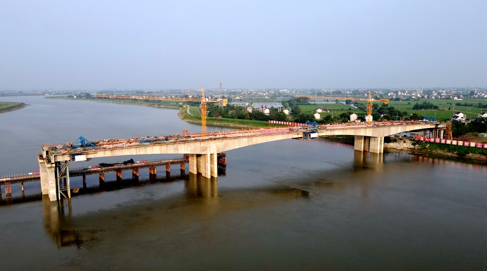 为确保特大桥主桥顺利实����� �������Ƴ������������ �������Ƴ������������ �������Ƴ������������ �������Ƴ�������现合龙,项目部精心筹划、不断优化施����� �������Ƴ������������ �������Ƴ������������ �������Ƴ������������ �������Ƴ�������工组织方案,分左、右幅两个阶段进行合龙施工,严����� �������Ƴ������������ �������Ƴ������������ �������Ƴ������������ �������Ƴ�������格落实技术交底、悬臂浇筑关键工序专人����� �������Ƴ������������ �������Ƴ������������ �������Ƴ������������ �������Ƴ�������验收、全程旁站和安全包保等制度,并采用第三方监����� �������Ƴ������������ �������Ƴ������������ �������Ƴ������������ �������Ƴ�������控,对悬浇施工的线形控制进行实时测量,由����� �������Ƴ����������� �������Ƴ����������� �������Ƴ������������ �������Ƴ������项目测量组对数据相互校核,保证各项控制指标符����� �������Ƴ������������ �������Ƴ������������ �������Ƴ������������ �������Ƴ�������合规范要求,确保桥梁合龙质量。针对汛期及涉河施����� �������Ƴ������������ �������Ƴ������������ �������Ƴ����������� �������Ƴ�������工,项目在进行通航安全评估的基础上,在通航孔设����� �������Ƴ������������ �������Ƴ������������ �������Ƴ������������ �������Ƴ�������置防撞墩,完善助航设施及警示标志,每日进行航����� �������Ƴ������������ �������Ƴ������������ �������Ƴ������������ �������Ƴ�������道巡查,强化与水文部门沟通协调,在恶劣天气及关����� �������Ƴ������������ �������Ƴ������������ �������Ƴ������������ �������Ƴ�������键施工节点期间申请封航,克服雨季、高温����� �������Ƴ������������ �������Ƴ������������ �������Ƴ����������� �������Ƴ�������等多重考验,顺利完成合龙任务。